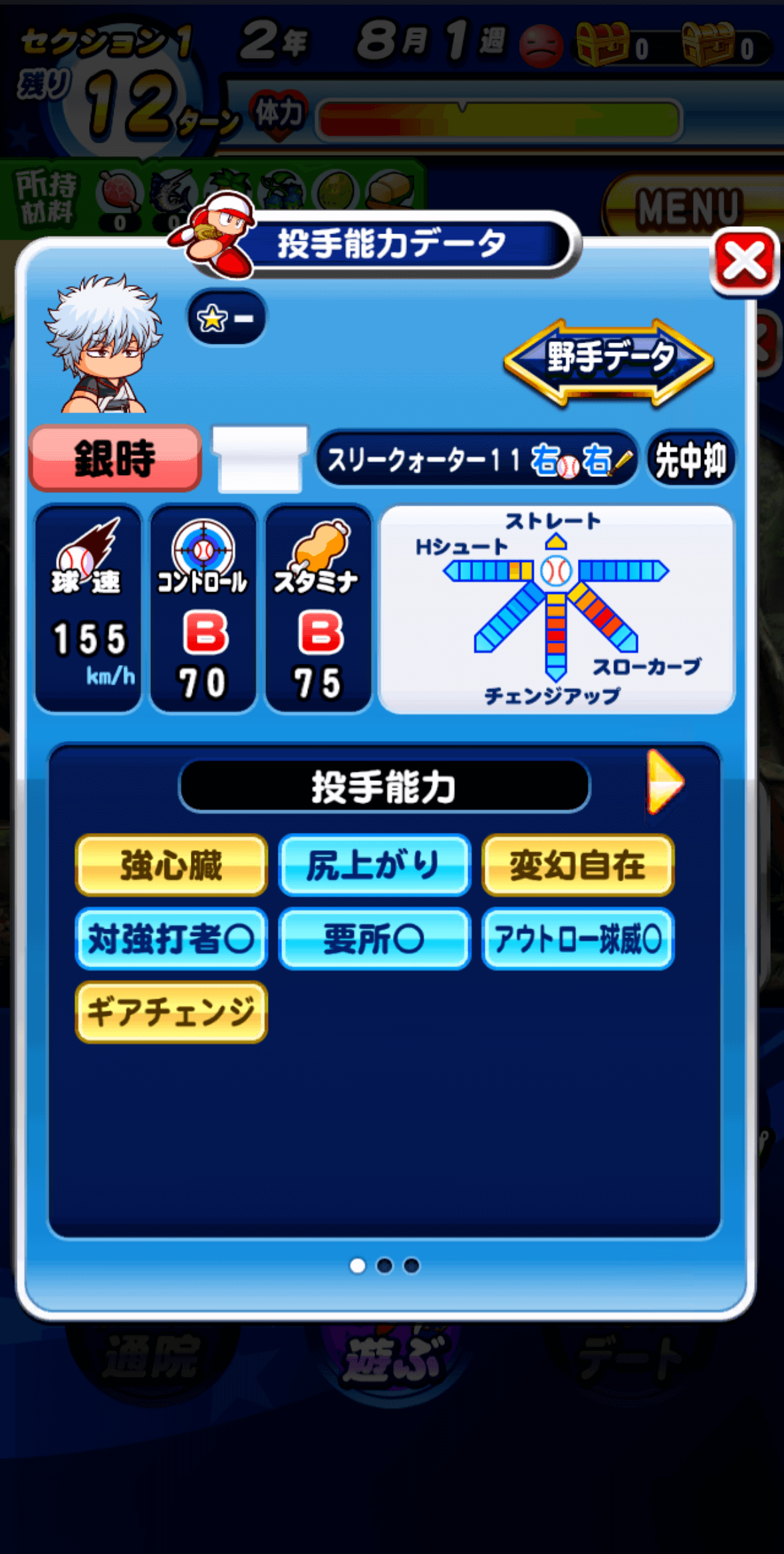 銀さんは剛速球も投げつつ緩急で翻弄するタイプのピッチャーになりました。